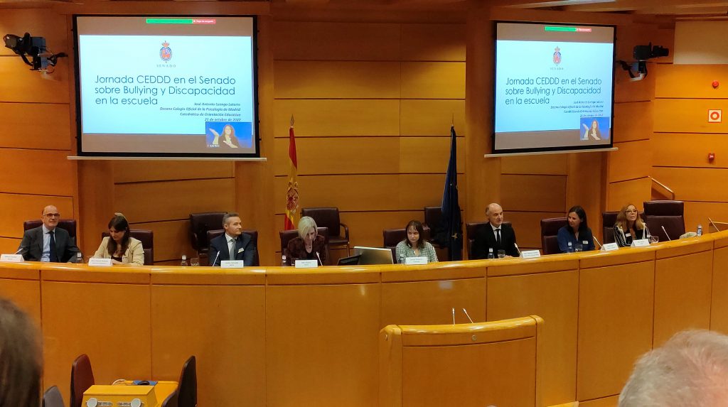El pasado viernes en la Sala Europa del Senado de España se habló de bullying y discapacidad en la escuela en una jornada organizada por el CEDDD (Consejo Español en Defensa de la Dependencia y la Discapacidad) donde han participado expertos en prevención del Bullying, profesionales de la enseñanza y personas afectadas.
